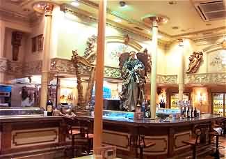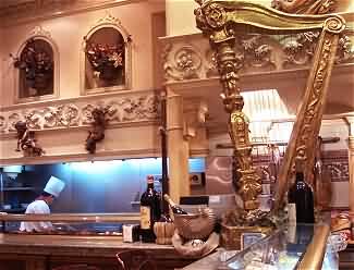 There's a good selection of dishes and they do a good onion soup and a moussaka. The interior decor is over the top with floating angels and large harp. |